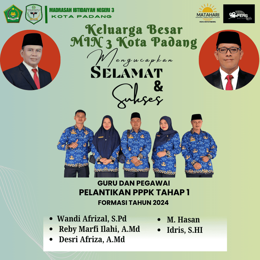 Kepala MIN 3 Kota Padang, M. Yusuf memberikan apresiasi dan ucapan selamat kepada para guru dan pegawai MIN 3 Kota Padang yang telah menerima SK Pengangkatan PPPK, “ Saya ucapkan selamat kepada Bapak Ibu yang pada hari ini telah menerima SK Pengangkatan PPPK. Hasil tersebut merupakan buah dari perjuangan dan pengabdian selama ini, " ungkapnya.